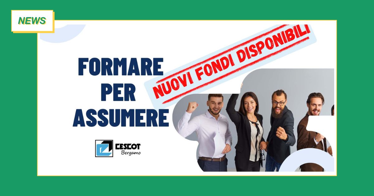 Regione Lombardia ha rifinanziato con ulteriori 2,5 milioni di euro il bando “Formare per Assumere”, la misura che mette a disposizione servizi gratuiti per favorire le imprese nella selezione, formazione e assunzione di nuove risorse, offrendo: un voucher formativo fino a 3.000 € per aggiornare le competenze del neoassunto incentivi occupazionali fino a 8.000 € L’intervento è rivolto alle aziende che assumono persone disoccupate da almeno 30 giorni, con contratto a tempo indeterminato, determinato (minimo 12 mesi) o di apprendistato, e offre un rimborso fino al 100% dei costi formativi. L’incentivo è riconosciuto successivamente al completamento del percorso formativo (entro 90 giorni dalla data di assunzione del lavoratore) e subordinato all’effettività del contratto di lavoro e alla permanenza del lavoratore presso l’impresa. Il termine per la presentazione delle domande di contributo è stato prorogato al 31 dicembre 2025, salvo esaurimento delle risorse. Il datore di lavoro a seguito dell’assunzione del destinatario deve presentare la domanda di contributo attraverso il sistema informativo Bandi Online www.bandi.regione.lombardia.it. Cescot Bergamo ti seguirà passo per passo, prima che le risorse si esauriscano! Approfittane subito. Per maggiori info vai alla pagina di Cescot dedicata al bando